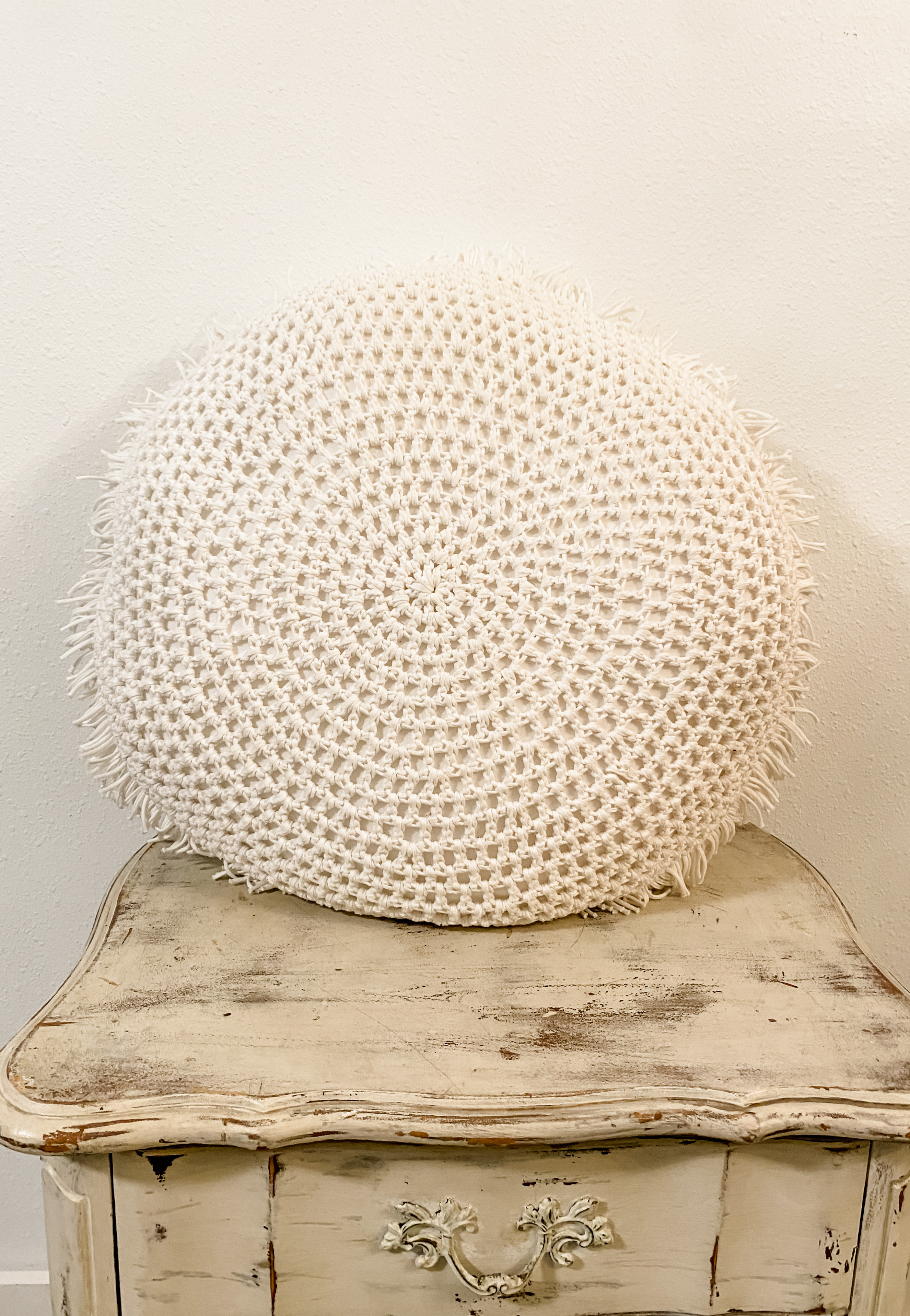 Large White Round Pillow With Tassels